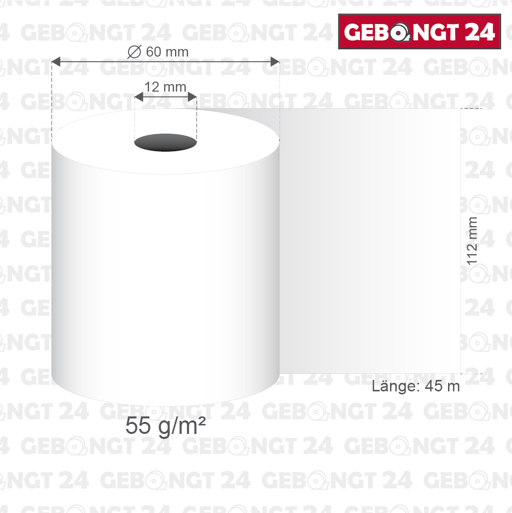 Diese Bonrolle ist eine BPA freie Thermorolle mit den Maßen 112mm x 80m x 12mm